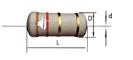 | 功率 | 阻值范围 | 长度 (L) | 直径 (D) | 引线直径 (d) | 最大工作电压 | 最大负荷电压 | 最高额定电压 | 最高绝缘电压 |